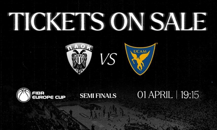 Η ΚΑΕ ΠΑΟΚ ανακοινώνει ό,τι ξεκίνησε η διάθεση των εισιτηρίων για τον αγώνα ΠΑΟΚ – Murcia, τον πρώτο ημιτελικό του FIBA Europe Cup, που θα διεξαχθεί στο PAOK Sports Arena την Τετάρτη 1η Απριλίου 2026 στις 19:15. Ο ΠΑΟΚ είναι για δεύτερη συνεχόμενη χρονιά στους “4” της διοργάνωσης και ΟΛΟΙ ΜΑΖΙ, θα κάνουμε το πρώτο βήμα για την συμμετοχή στους τελικούς.