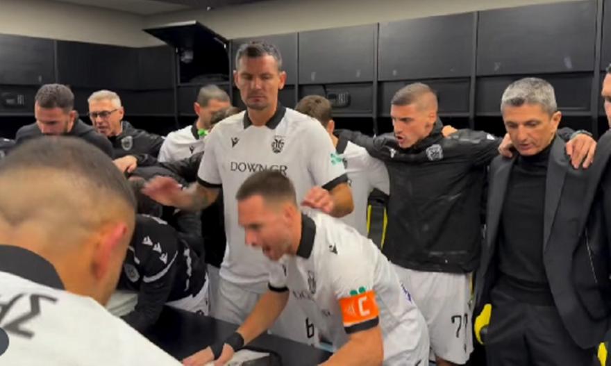 Ο αρχηγός του ΠΑΟΚ, Αντρίγια Ζίβκοβιτς, μίλησε στους συμπαίκτες του στ’ αποδυτήρια των φιλοξενούμενων στην OPAP Arena λίγα λεπτά προτού γίνει η πρώτη σέντρα στο ντέρμπι των «δικεφάλων» απέναντι στην ΑΕΚ.