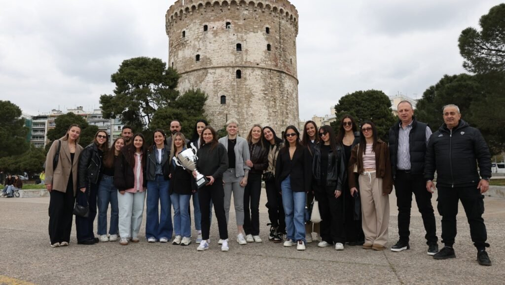 Οι Κυπελλούχες Ελλάδος φωτογραφήθηκαν με το τρόπαιο στο εμβληματικό σημείο της Θεσσαλονίκης, συνεχίζοντας μία συνήθεια που ακολουθείται τα τελευταία χρόνια από τα τμήματα του συλλόγου μετά από σημαντικές διακρίσεις.
