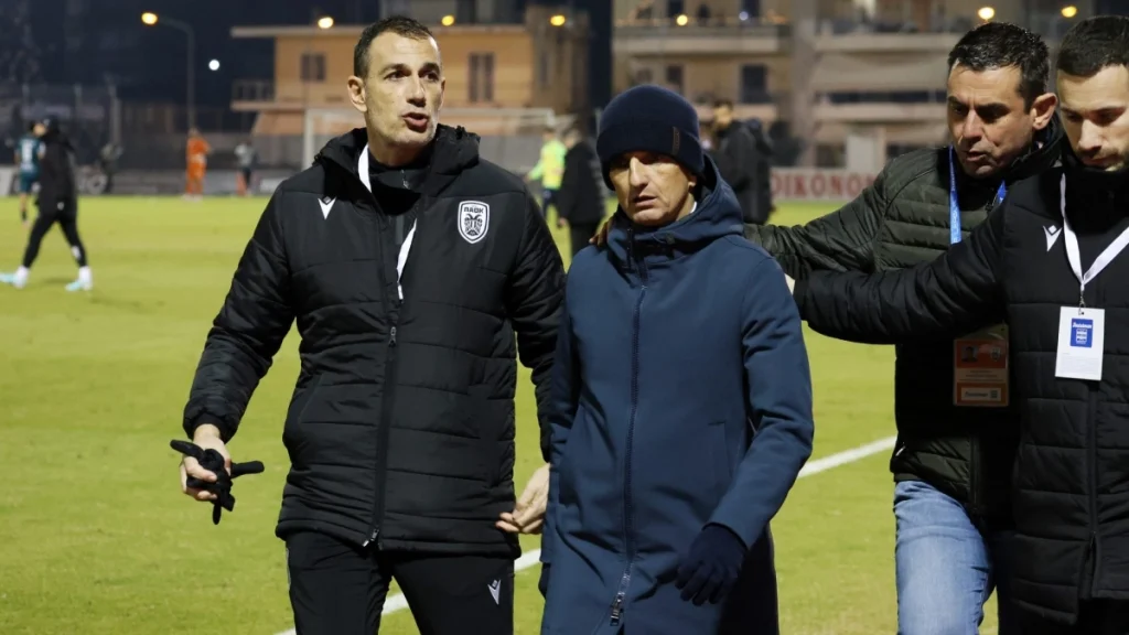 Μόλις ακούστηκε το τελευταίο σφύριγμα του Τάσου Σιδηρόπουλου, ο τεχνικός του ΠΑΟΚ «εξερράγη» στον πάγκο της ομάδας του, πανηγυρίζοντας με τους συνεργάτες του.