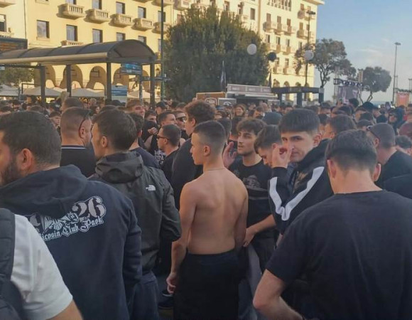 Μάλιστα, λίγο μετά τις 6 το απόγευμα έστησαν τη δική τους ασπρόμαυρη κερκίδα στην «καρδιά» της Θεσσαλονίκης, ενώ η μαζικότητα των φίλων του συλλόγου μετέτρεψε τους κεντρικούς οδικούς άξονες σε ένα απέραντο ασπρόμαυρο «ποτάμι».