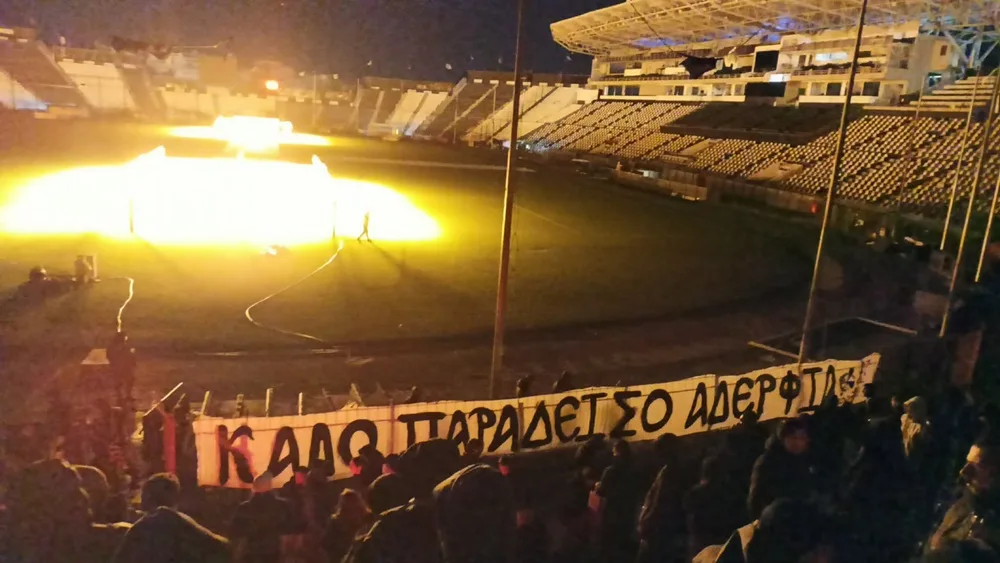 Οι φίλοι των ασπρόμαυρων κρέμασαν πανό που ανέγραφε «Καλό Παράδεισο Αδέλφια» με το οποίο αποχαιρετούν τα αδικοχαμένα αετόπουλα που ξεκίνησαν το ταξίδι τους προς τη νοτιοανατολική Γαλλία και τη Λιόν, για τον ευρωπαϊκό αγώνα της αγαπημένης τους ομάδας, αλλά δεν κατάφεραν να το ολοκληρώσουν.
