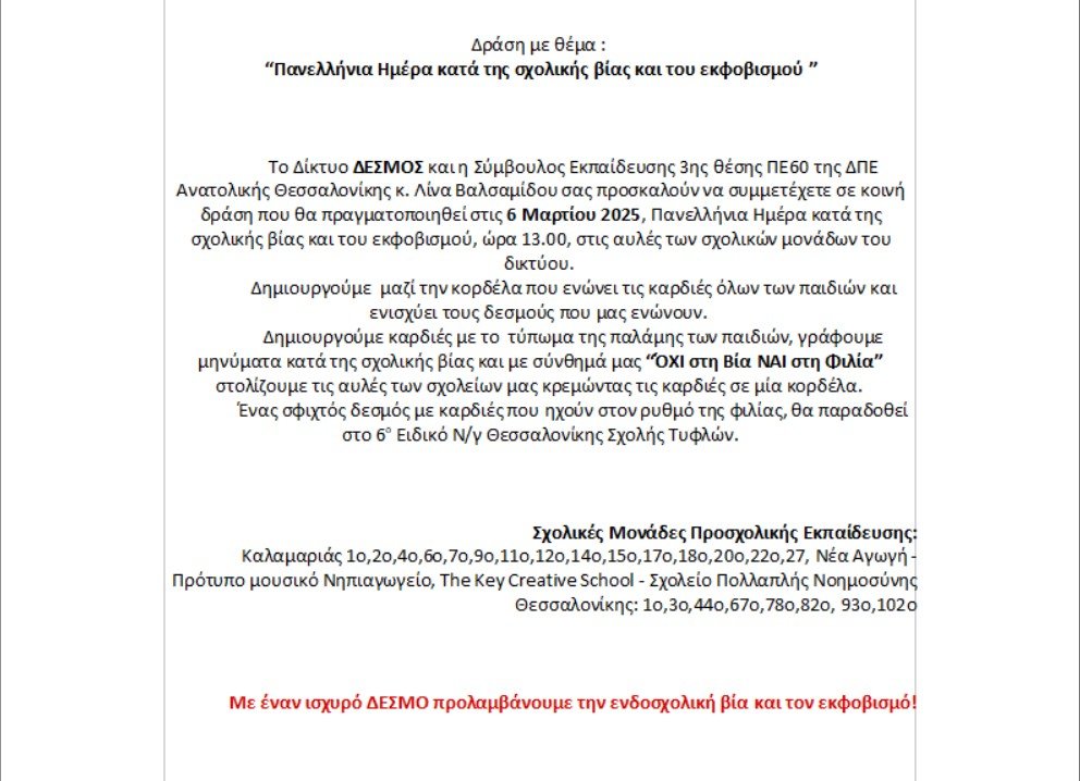 https://g-point.gr/wp-content/uploads/2025/03/6-Μαρτίου-Πανελλήνια-Ημέρα-Κατά-της-Σχολικής-Βίας-και-του-Εκφοβισμού.mp4 Post Views: 71 Διάβασε Super League: Μόνο Έλληνες διαιτητές το Σαββατοκύριακο