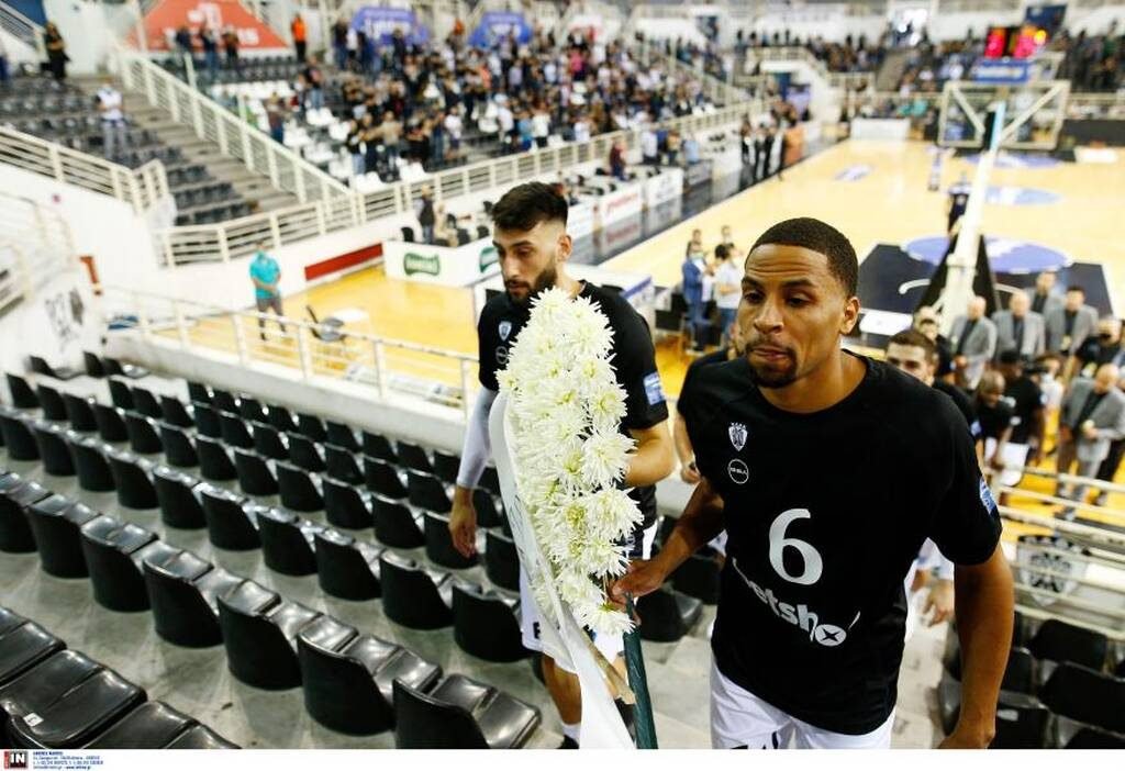 Οι παίκτες του Άρη Λυκογιάννη λίγο πριν το πρώτο τζάμπολ της σεζόν με το Λαύριο στην πρεμιέρα της Basket League, έκαναν την εμφάνισή τους στο παρκέ με στεφάνια αφιερωμένα στην μνήμη των έξι αδικοχαμένων οπαδών του Δικεφάλου στις 4 Οκτωβρίου του 1999 στα Τέμπη.
