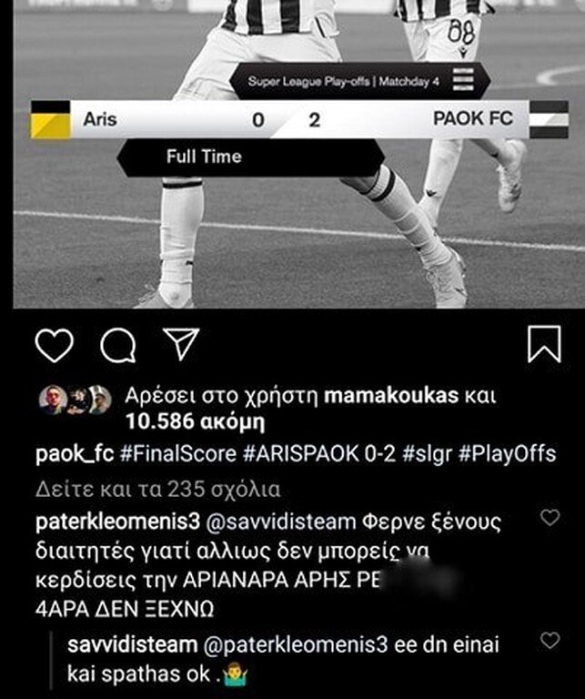 Εκεί υπήρχε ένα σχόλιο φίλου του Άρη που απευθυνόταν στον Γιώργο Σαββίδη, το οποίο δεν έμεινε… αναπάντητο.