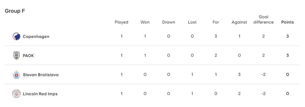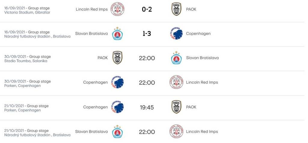 Αμφότερες οι ομάδες νίκησαν εκτός έδρας. Η Κοπεγχάγη 3-1 τη Σλόβαν Μπρατισλάβας και ο ΠΑΟΚ την Λίνκολν με 2-0.