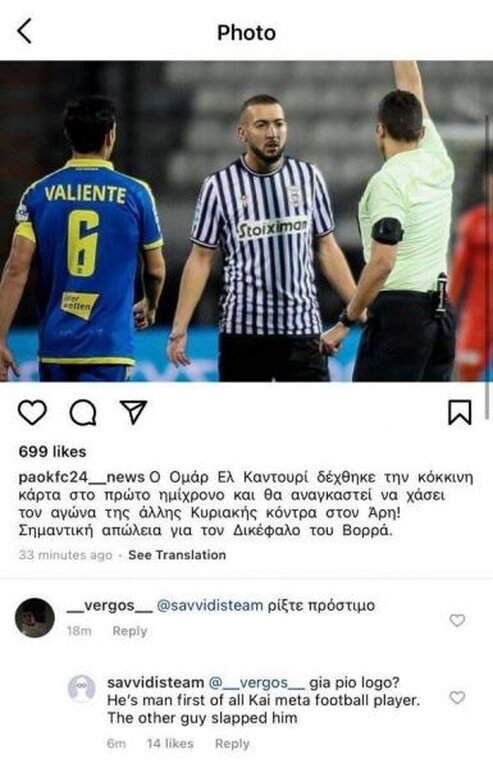 Ένας φίλος του ΠΑΟΚ μάλιστα καλούσε την ΠΑΕ να επιβάλει πρόστιμο στον παίκτη για τη συμπεριφορά του, με σχόλιο σε ανάρτηση της ομάδας