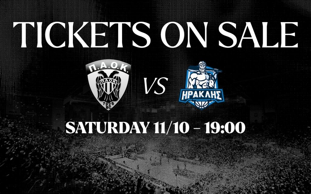 η διάθεση των εισιτηρίων για το προσεχές ντέρμπι με τον Ηρακλή στο «PAOK Sports Arena» για τη 2η αγωνιστική της GBL (11/10, 19:00) ξεκίνησε η ΚΑΕ ΠΑΟΚ.