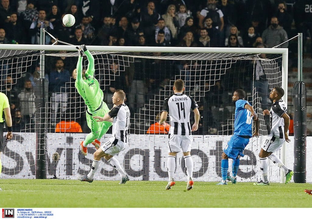 Η Μαρσέιγ συνδύασε την υπεροχή της με γκολ στο 34ο λεπτό. Μετά από λάθος του Κρέσπο, ο Γκεντουζί σέρβιρε από τα δεξιά για τον Παγέ, ο οποίος πλάσαρε από κοντά. Αυτή ή διαφορά των δύο ομάδων στο β’ μέρος. Ο ΠΑΟΚ δεν εξαργύρωσε το καλό του διάστημα, ενώ η ομάδα του Σαμπάολι το έκανε. Και πάλι όμως είχε μια τελευταία ζαριά για να ισοφαρίσει, αλλά ο Άκπομ σούταρε πάνω στον Κρέσπο στο 44’.