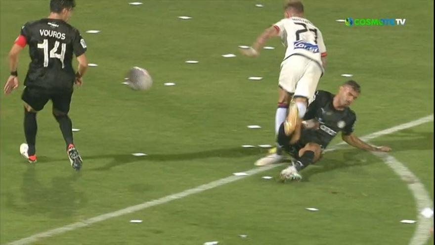 Πέναλτι ζήτησε στο 23ο λεπτό του αγώνα με τον ΟΦΗ ο ΠΑΟΚ, ωστόσο διαιτητής και VAR συμφώνησαν πως το μαρκάρισμα του Καρώ στον Τόμας έγινε εκτός περιοχής. Την εκτέλεση ανέλαβε ο Μουργκ, που έστειλε άουτ την μπάλα.