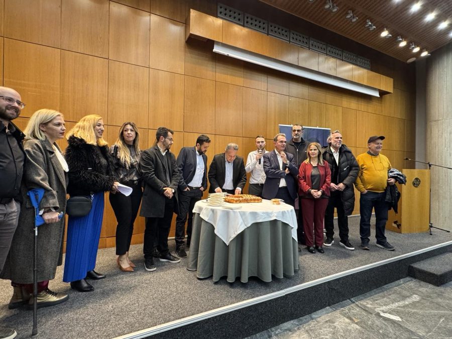 Ο κ.Αγγελούδης, μαζί με τους Ευρυβιάδη Ελευθεριάδη, Αδωνι Κουλιούφα και Αλέξανδρο Μανδρίνο, που αποτελούν τα μέλη της Εκτελεστικής Γραμματείας έκοψαν την πίτα με το φλουρί να πέφτει στον τομέα Πολιτισμός – Τουρισμός σε μια εκδήλωση που συνοδεύτηκε από μουσική και χαλαρές συζητήσεις.