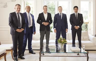 Συνάντηση του πρωθυπουργού Κυριάκου Μητσοτάκη με τον πρόεδρο της UEFA Aleksander Čeferin, τον Πρόεδρο της CAF Patrice Motsepe, τον Πρόεδρο της ECA Nasser Al-Khelaifi και τον Γενικό Γραμματέα της UEFA Θεόδωρο Θεοδωρίδη